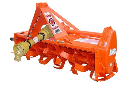 The "PATENTED" KING KUTTER XB Xtra GEAR DRIVEN ROTARY TILLERS have all the quality features of the full size tillers. The heavy duty frame and 6 tines per flange produce a better seedbed. They provide a uniform mixture throughout cultivated depth and produce loose textured soil that holds moisture and reduces erosion. The XB Xtra tiller comes in a 54” Model.